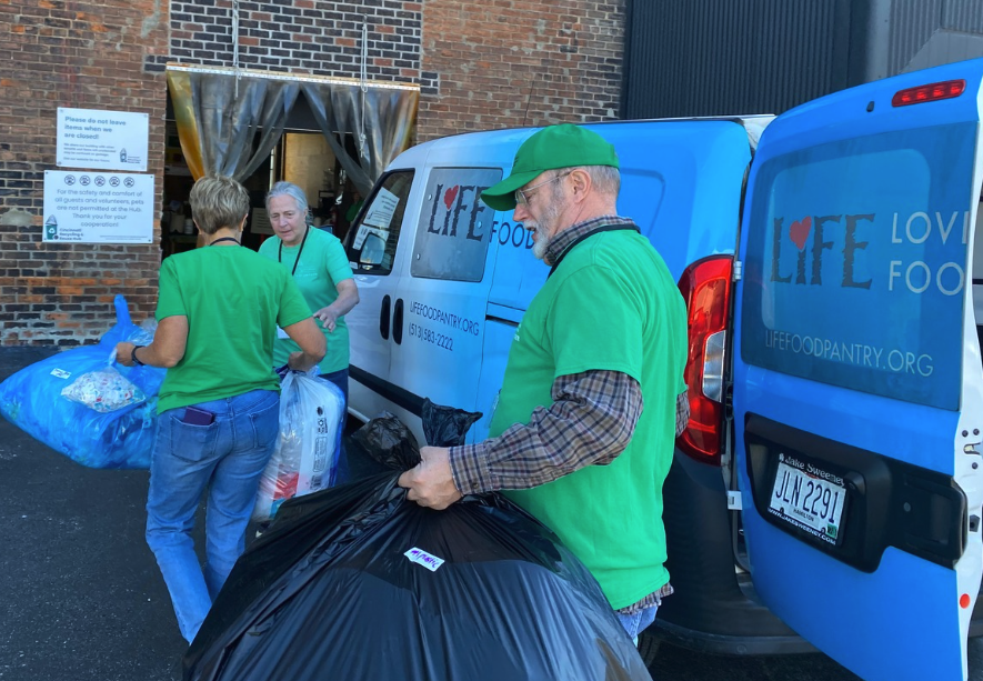 The Hub provides reuseable items such as utensils, pill bottles, and shoes to 15 local nonprofits including Cincinnati Animal CARE, Matthew 25 Ministries, Our Daily Bread, and Dress4Success.